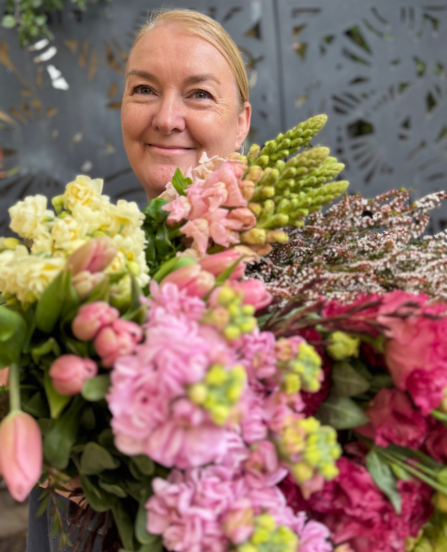 I make flowers for real moments. Big ones, small ones, happy ones, hard ones. Every bouquet is made fresh, thoughtfully, and with care — for the person receiving them and the planet too. No floral foam, no weird spray-painted nonsense, just beautiful, natural blooms doing what they do best.